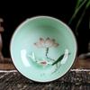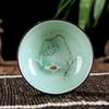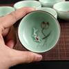 Vysoce kvalitní celadon čínská Kung Fu čajová souprava Kulatá plochá Lotos Kapr Pu'er Čajové šálky Ručně malovaný keramický Jednoduchý kapr Čajový šálek