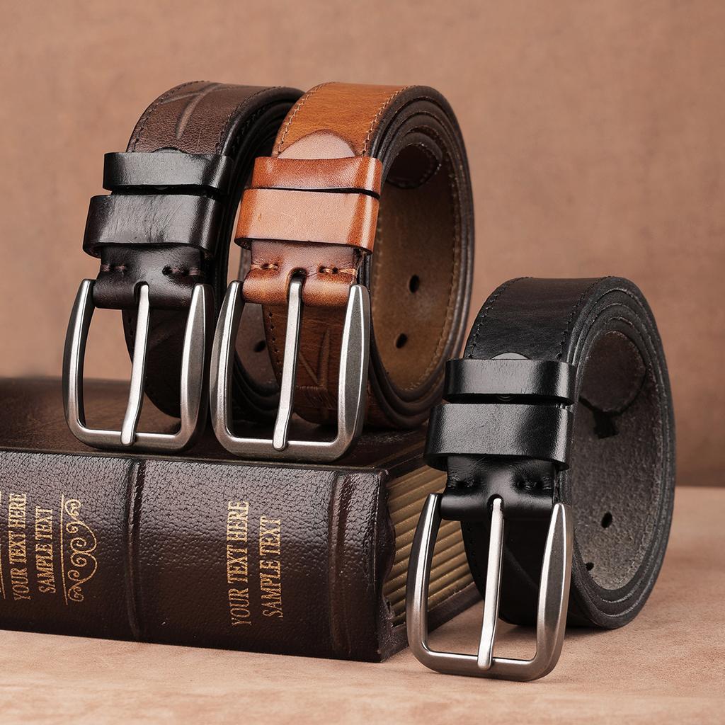 Retro Belt Men'S First Layer Cowhide Whole Leather Versatile Tree Paste Leather Pin Buckle Belt Middle-Aged And Young People Belt
