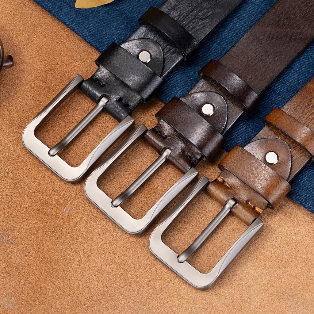 Belt First Layer Cowhide Genuine Leather Versatile Tree Paste Leather Pin Buckle Retro Belt Middle-Aged And Young Men'S Belt