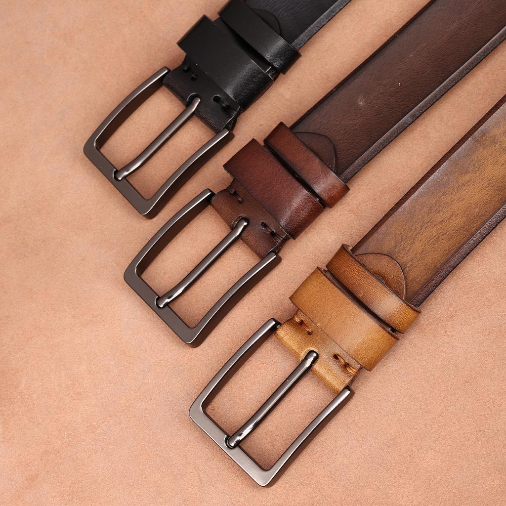 Men'S Whole First-Layer Cowhide Belt Casual Simple Pin Buckle Leather Belt Business Middle-Aged And Young Men'S Belt