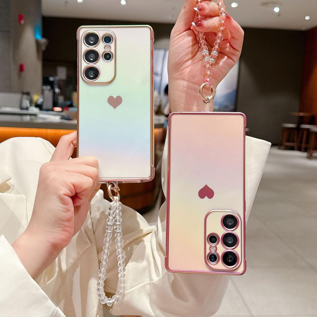 Použitelné pro pouzdro na mobilní telefon Samsung S25ultra Samsung S24 Silikonová strana Láska S23 Nová křišťálová šňůrka