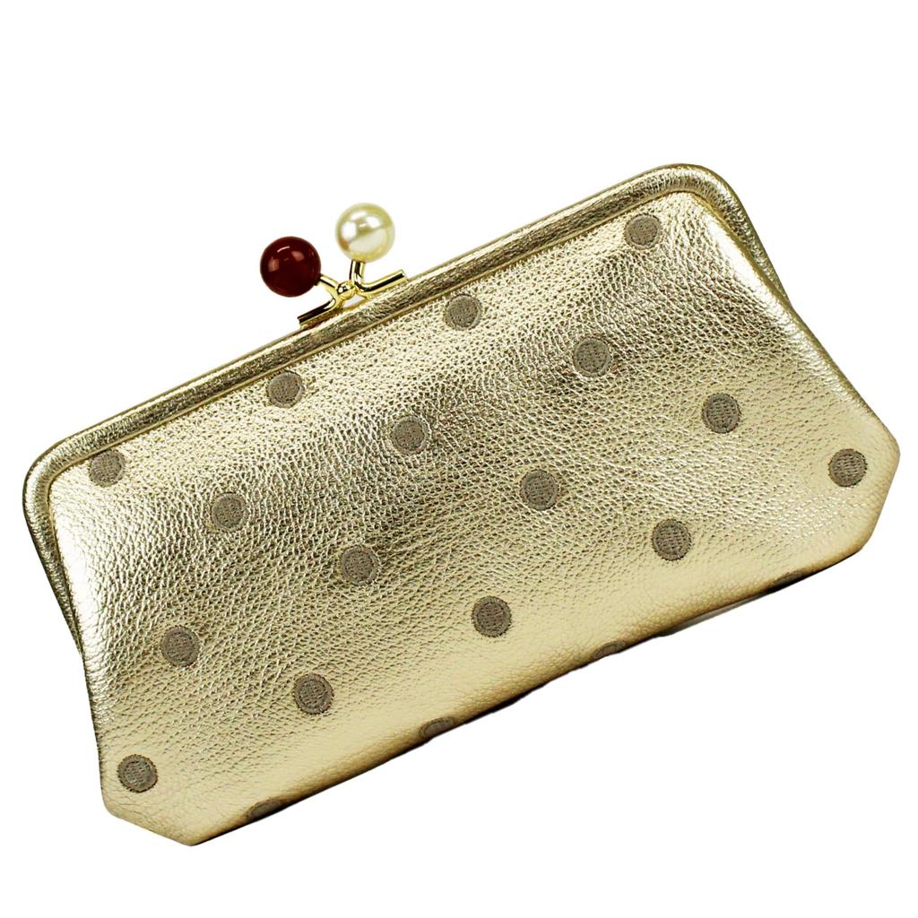 Perche (Perche) Long Wallet, Goat Leather, Women's, Genuine Leather, Cute, Large Capacity, Popular, Green, Brand Name, 08-06-03561 (Gold Dot)