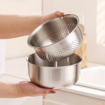 2Pcs/Set Stainless Steel Strainer Basket Set Rust-proof Rice Wash Filter Basin Vegetables