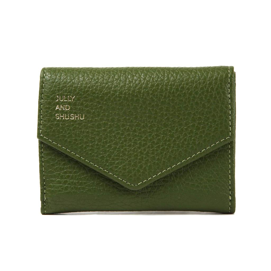 JULLY AND SHUSHU Women's Genuine Leather Tri-Fold Wallet, Compact, Gift, DR-OR (Green)
