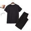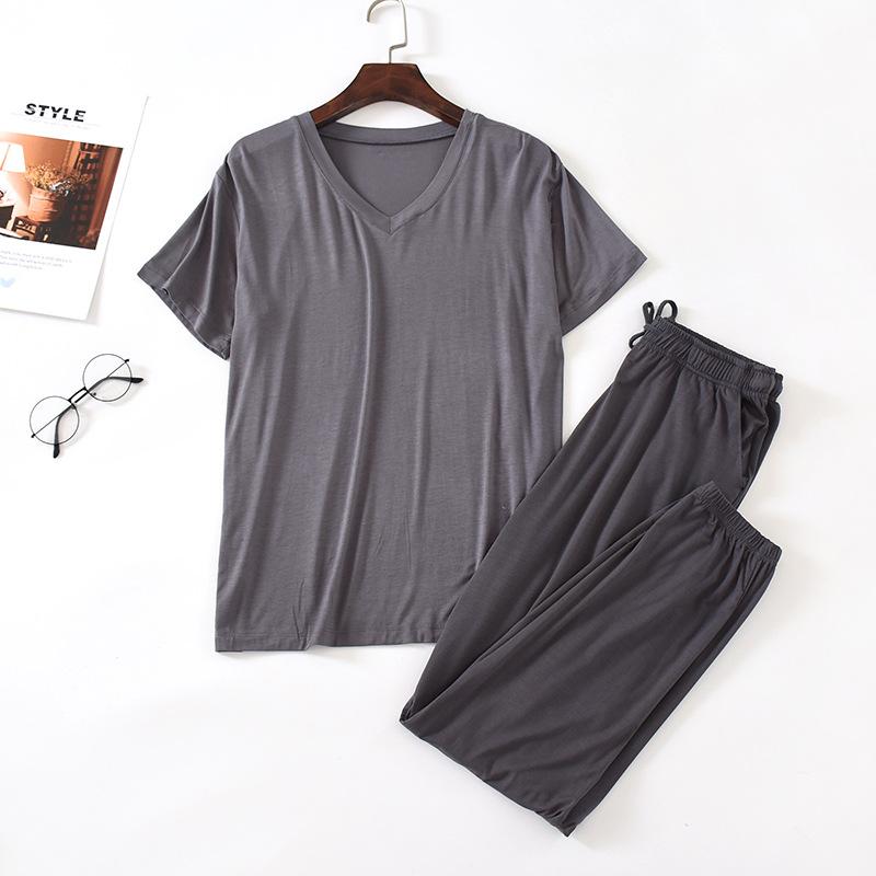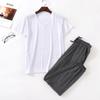 Men's Spring and Summer Thin Home Suit Set with V-neck Short Sleeved Top and Tapered Pants, Loose Oversized Air Conditioning Comfort Two-piece Set