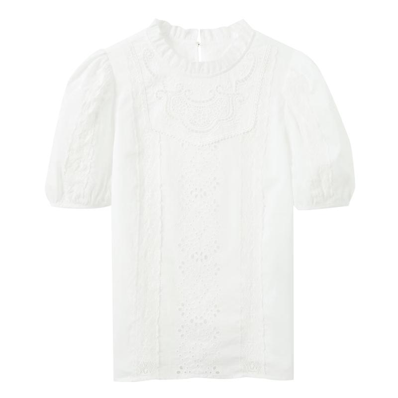 Women's Embroidered Stand Collar Puff Sleeve Top