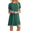 Women's Spring And Summer Round Neck Short Sleeve Large Loose Solid Color Dress