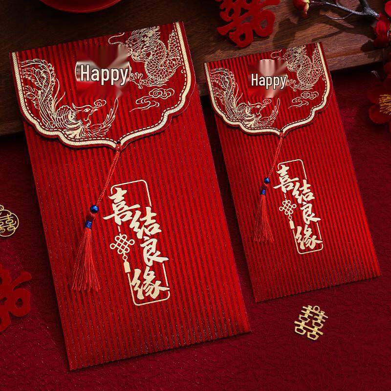 Dragon & Phoenix Tassel Wedding Red Packets (6-pack)