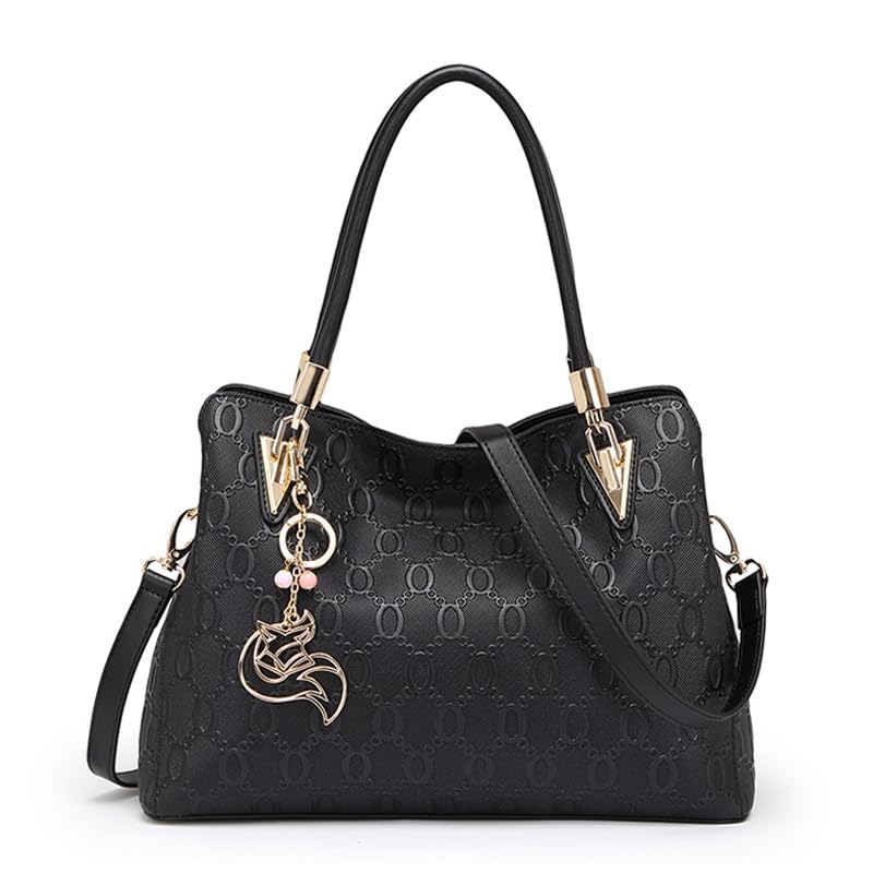 FOXLOVER Women's Large Capacity Split Leather Shoulder Bag with Top Handle, Fashion Tote (Black)