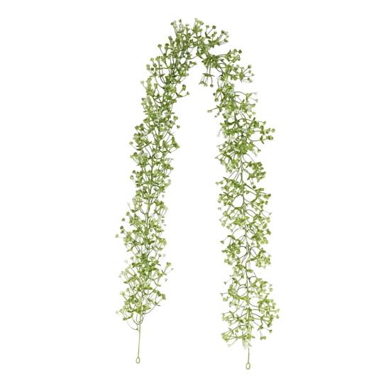 This artificial garland is a versatile, durable decoration perfect for both indoor and outdoor use. Resistant to sun and rain, it requires no maintenance and does not attract insects indoors, making it a cost-effective, reusable alternative to fresh flowers. Its realistic Gypsophila design features delicate clusters and natural gradient colors, creating a soft, romantic atmosphere that enhances weddings, garden parties, cafes, or window displays.