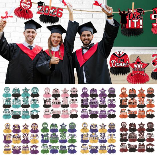 12Pcs 2026 Graduation Honeycomb Decor 3D Honeycomb Centerpieces for Commencement Party Red