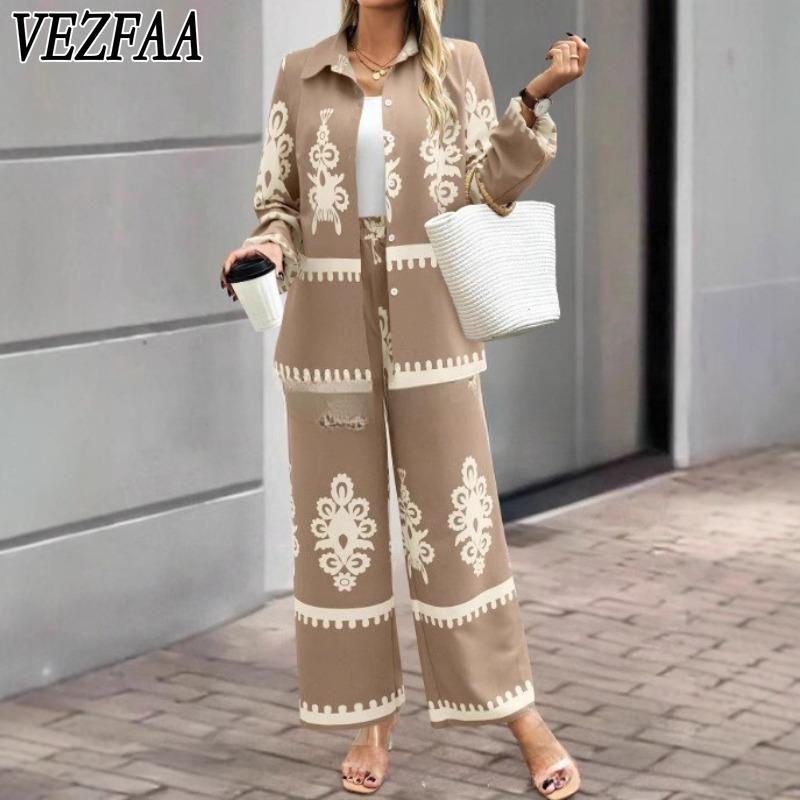 VEZFAA Dámská móda Ležérní Jaro Podzim Dlouhý rukáv POLO Krk Kalhoty Kalhoty Obleky