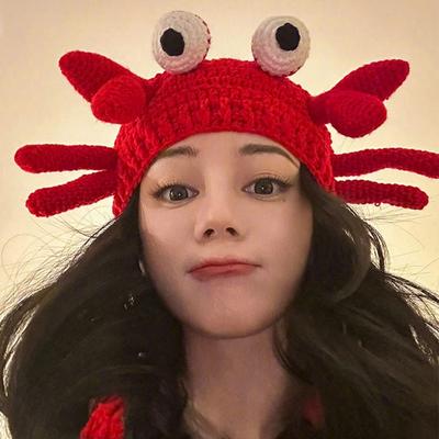 Eyes Crab Beanies Hat Knit Drawstring Hat Sweet Crab Pullover Cap Girls