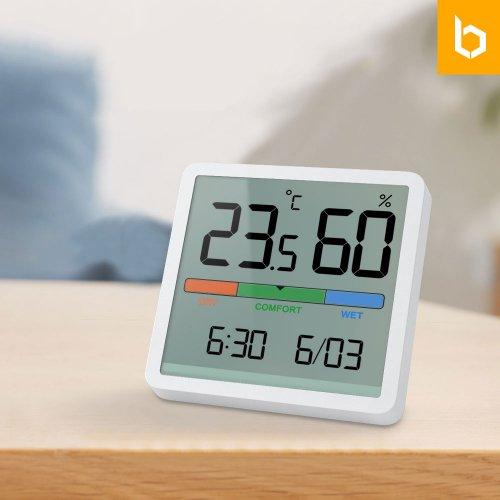 ✨Kalendářní hodiny USEB Comfort s měřením teploty a vlhkosti jsou víc než jen hodiny; Je to sofistikovaný monitor prostředí navržený ke zvýšení pohodlí a povědomí o vašem obytném nebo pracovním prostoru.. Tyto elegantní digitální hodiny plynule integrují kalendář, displej teploty a vlhkosti a poskytují základní informace na první pohled s čistou, moderní estetikou.