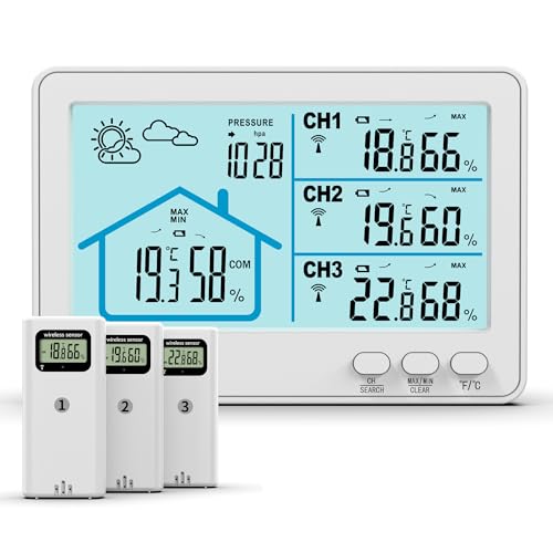 [Indoor/Outdoor Use & Three Slave Sensors]: This indoor/outdoor remote sensor is not waterproof and has a maximum communication distance of 100m and an effective distance of 30m. Using the slave sensors, it automatically transmits temperature and humidity measurements from three locations to the master unit. This is useful for managing family health, preventing influenza and colds, checking room dryness to keep skin moist, and preventing mold and heatstroke.