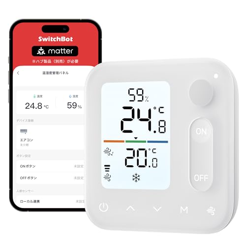 [4-in-1 Smart Panel for More Accurate Temperature Control] This SwitchBot Thermo-Hygrometer Panel combines a thermometer/hygrometer, motion sensor, air conditioner panel, and custom buttons into one. You can accurately adjust the temperature without having to worry about whether it's hot or cold. Enjoy hassle-free comfort and energy savings.