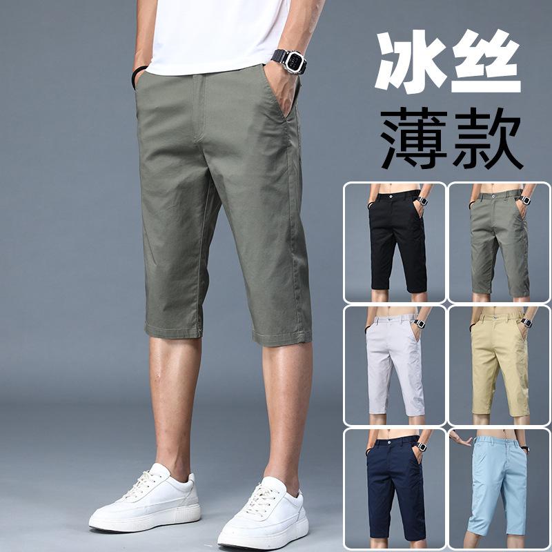Summer Thin Cotton Casual Shorts Men Breathable Stretch Straight Business Seven Half Pants Brand Clothing Men's Shorts