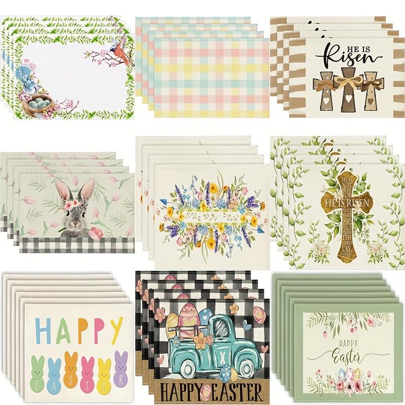 4pcs, Placemats, Square Happy Easter Theme Table Pads, Colorful Floral Cute Bunny Decorative Table Mat