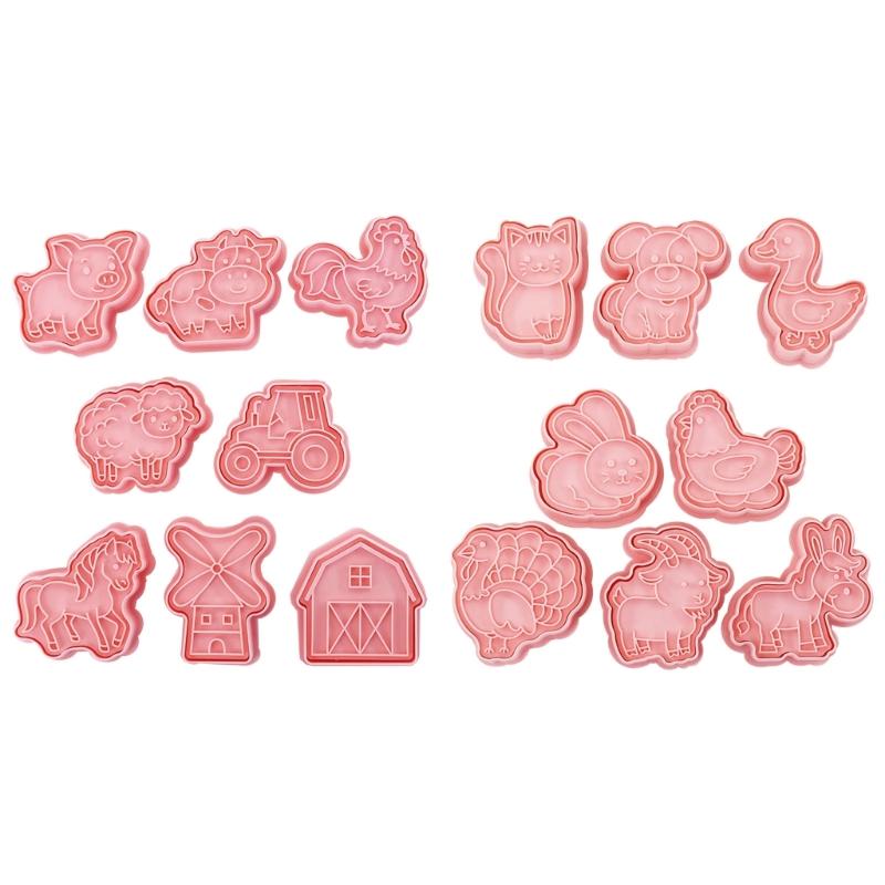 16Pcs Cartoon Farm Animals Biscuits Mold Cookie Stamps Set Fondant Biscuits Pastry Cookie Cutters for DIY Cake Baking