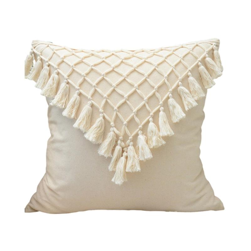 Soft Cotton-ramie Pillow Covers, European Style With Tassels Cushion Cover Shell for Sofa Bedroom Cream Beige Stylish