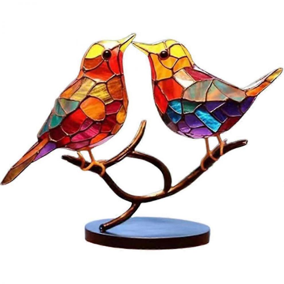 Buntglas-Vögel auf einem Ast, doppelseitige, mehrfarbige Tischdekoration, Vogel-Serie, Heimdekoration