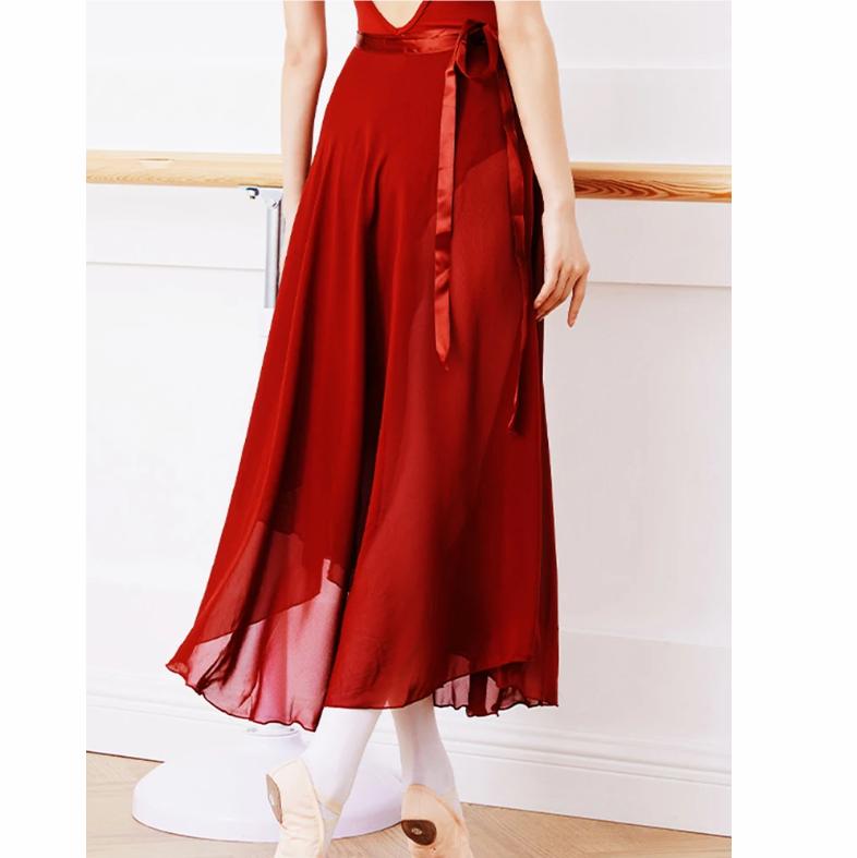 Dámské baletní taneční sukně pro dospělé Dlouhé šifonové taneční sukně Lyrické měkké baletní šaty Černá vínová Průhledné taneční kostýmy