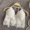 Sexy Boho Plážová Dovolená Tílko s Zavazováním za Krk Dámské Háčkované Plavky Podprsenka Bez Zad Vesta s Výřezy Třásněmi Tílko Dámské Crop Topy