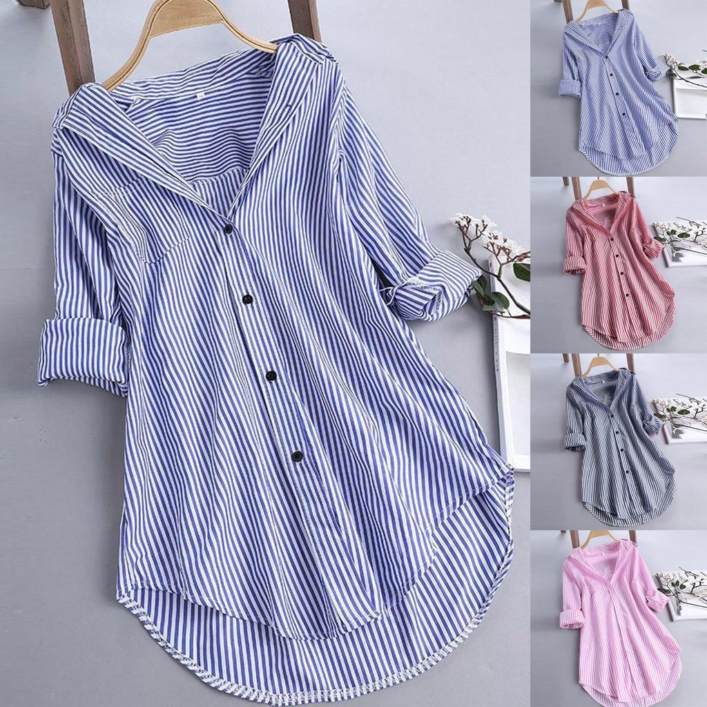 Dámská proužkovaná letní ležérní košile s dlouhým rukávem s potištěným knoflíkem