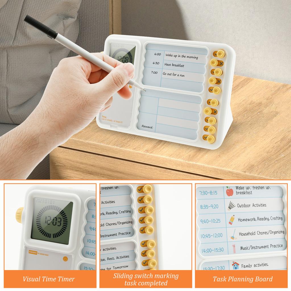 Visual Timer with Planning Board for Kids/Adults Silent Visual Timer with Chore Chart Board Time Management Tool for Home School