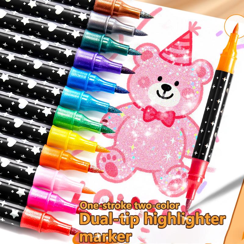 Glitter Dual Tip Markers Water Based Acrylic Paint Pens for Wood Canvas Stone Rock Painting Glass Ceramic Surfaces DIY Crafts