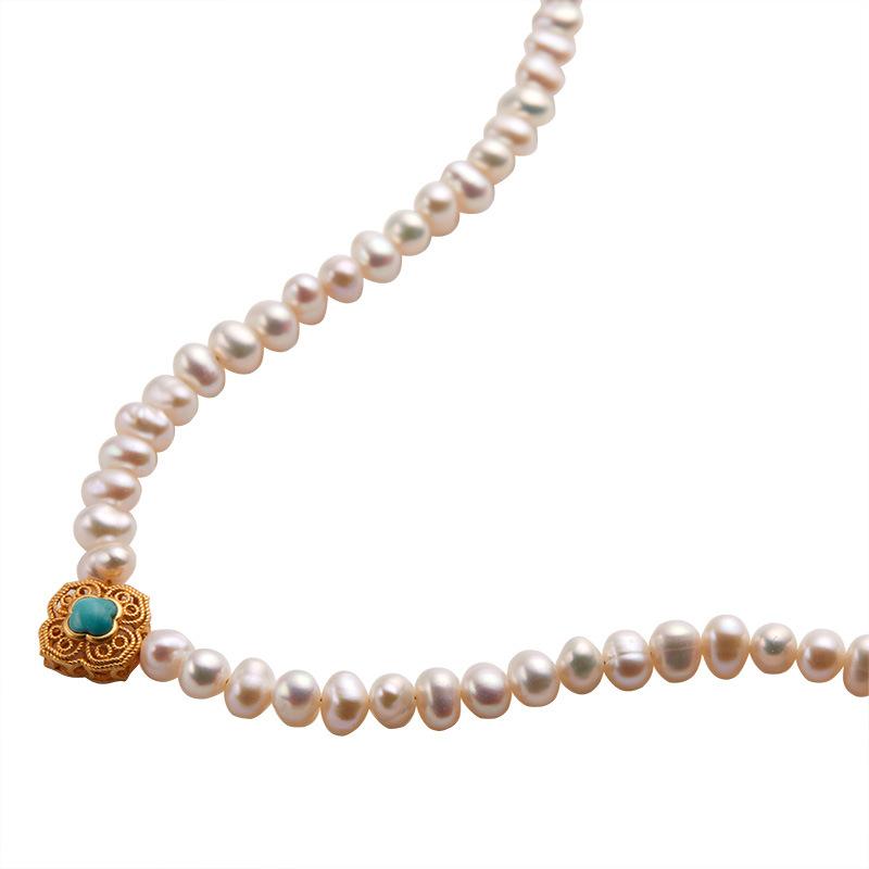 Original Design Natural Turquoise Freshwater Pearl S925 Sterling Silver Necklace Women'S Fashion Light Luxury Collarbone Chain Pendant