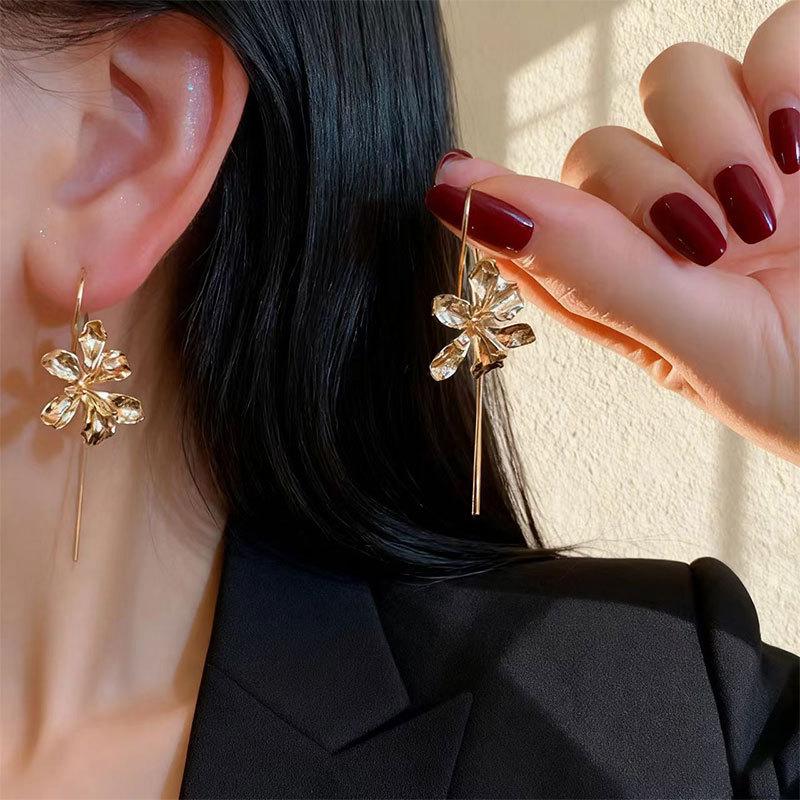 Light Luxury Three-Dimensional Iris Flower Earrings Women'S Simple Cold Wind Exquisite Elegant Ear Hook Cold Artistic Sense Creative Earrings