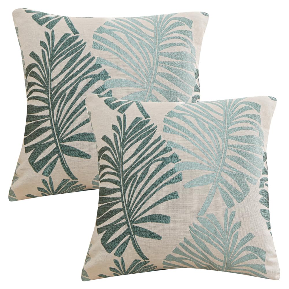 YunJeude Cushion Set of Nordic Cotton and Stylish and Cute Leaf Jacquard Zipper Simple and Modern Interior Design Covers, 45x45cm, 2, Style, Linen,
