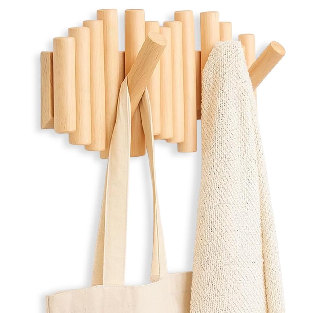 SALUDABLE Wooden Wall Wall Hanger for Coats and Stylish Interior Storage 5 Hooks, Hats, (Natural, Hooks)