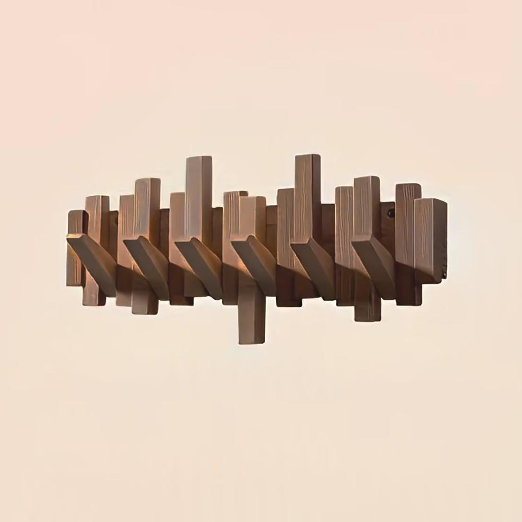 Rosefinch Solid Wood Wall No Holes 25kg Load Capacity Brown Hanger, 28.8203.3cm, Multi-Hook Storage, Space-Saving, Required, (6 Hooks),