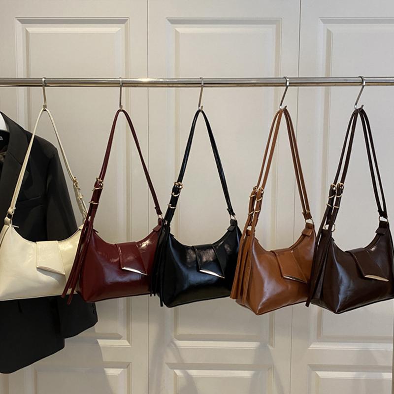 Women's Faux Leather French Casual Vintage Pure Color Simple Shoulder Crossbody Underarm Bag KTB