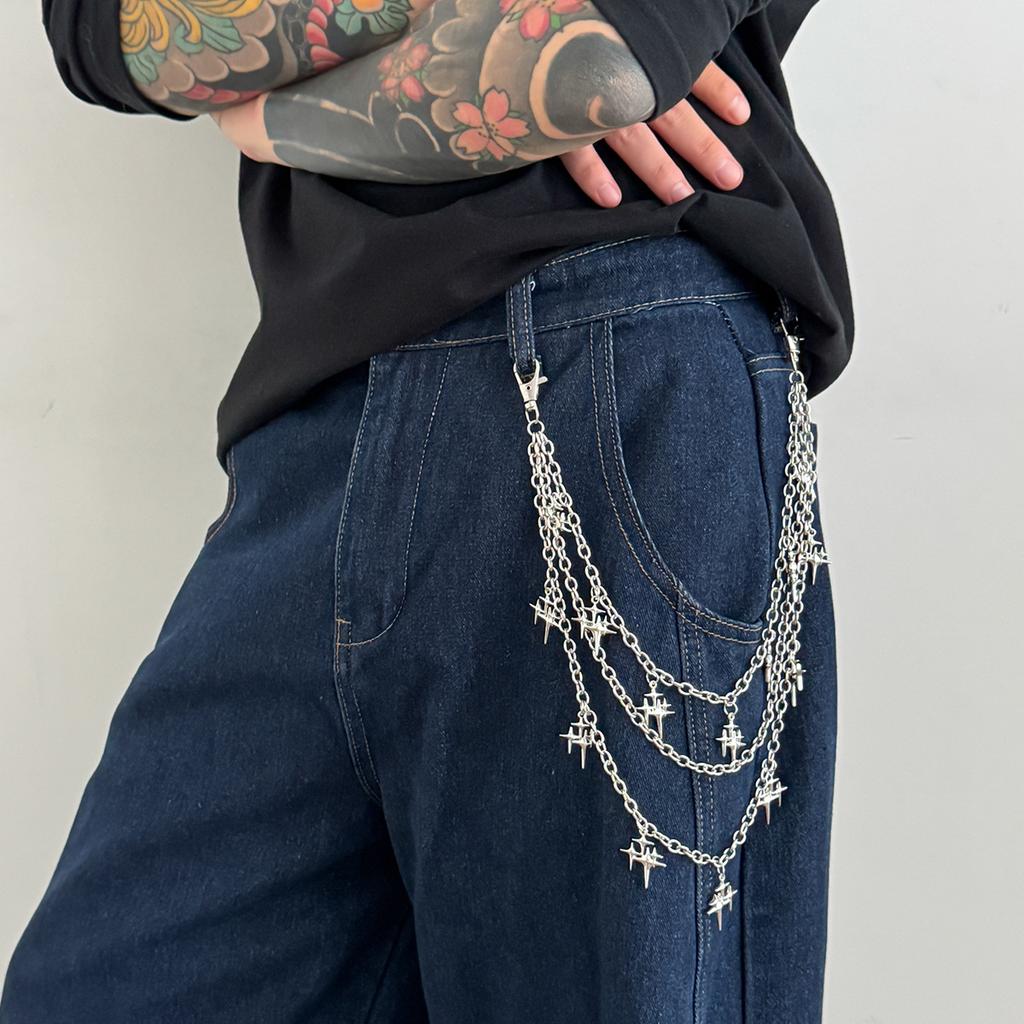 Módní trend Zářící hvězda Džínový řetízek, Hip Hop Kovový vícevrstvý řetízek Pasový řetízek s přívěskem