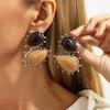 Temperament Light Luxury Resin Gem Stud Earrings, Retro Geometric Irregular Pleated Metal Oil Drop Earrings