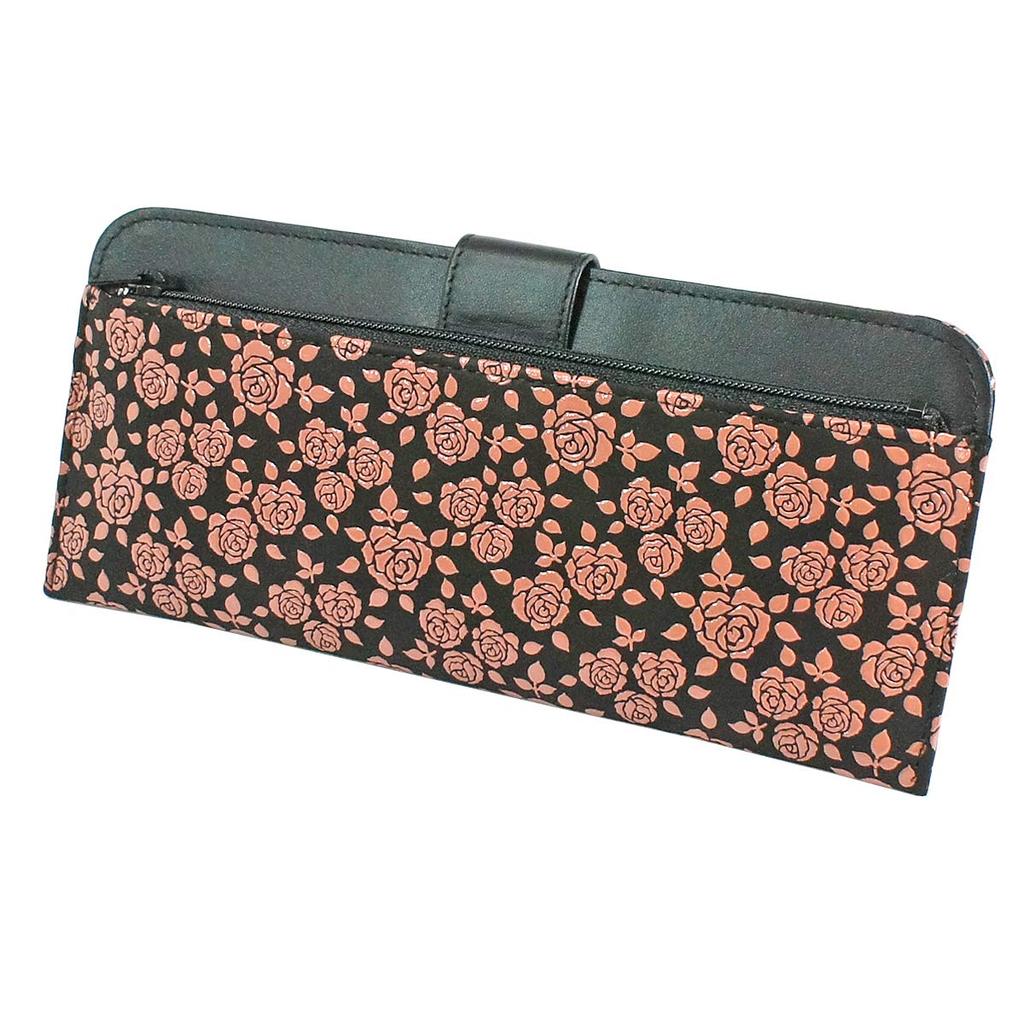 Indenya Inden Long Wallet, Large, Thin Deerskin, Black with Pink Lacquer, Small Rose Pattern, 2107-51-176