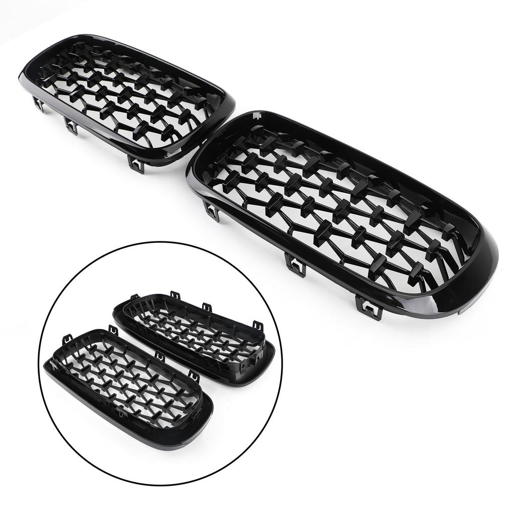 Meteor Black Front Kidney Grille Grill Fit 2014 - 2016 BMW X5 F15 Left & Right