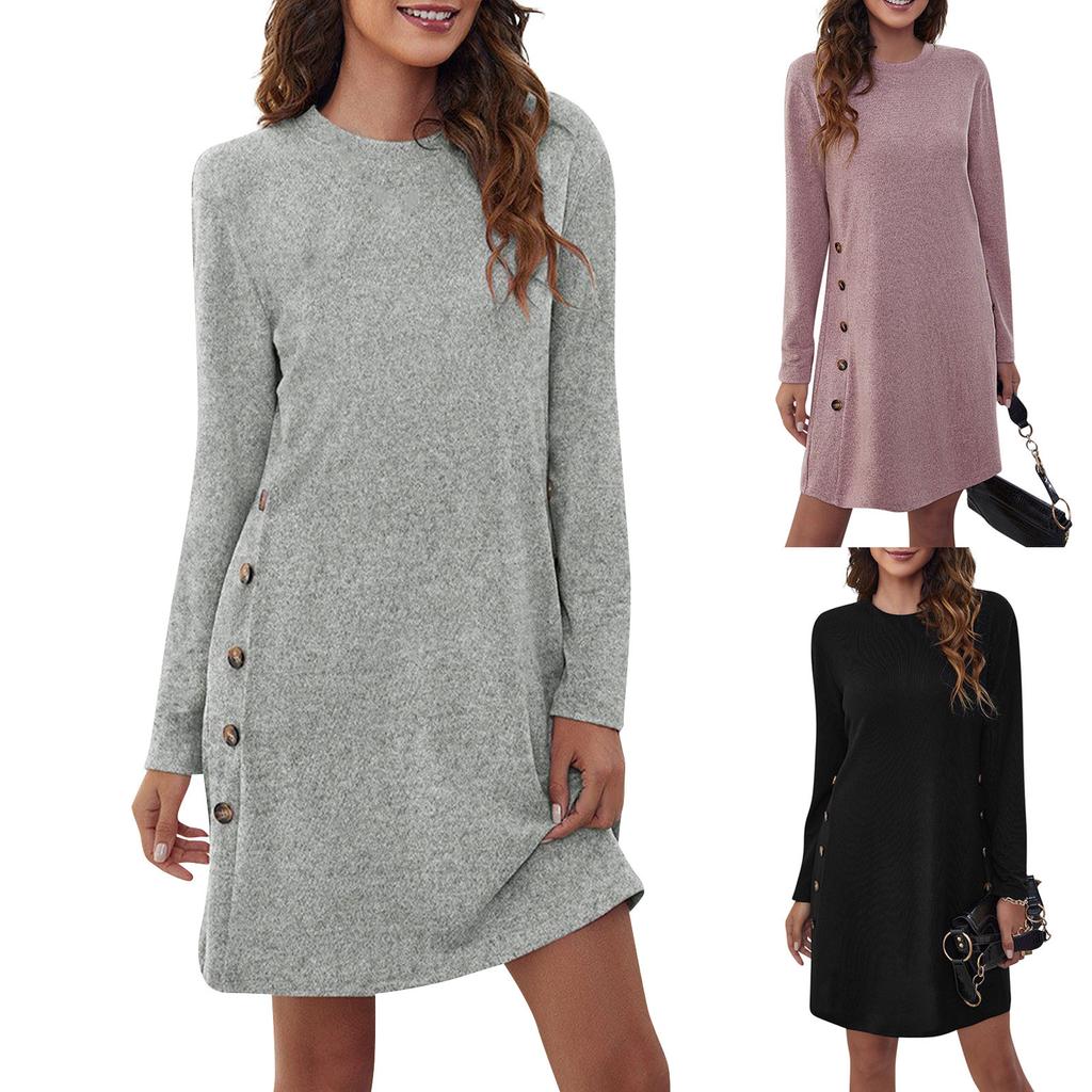 Dámské šaty pro volný čas s kulatým výstřihem a volným dlouhým rukávem
