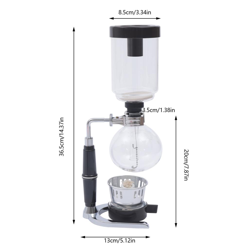 Vintage Siphon Vacuum Coffee Maker - 360ml Capacity Glass & Stainless Steel Rich Flavor Ideal for Home & Café Barista & Gifting
