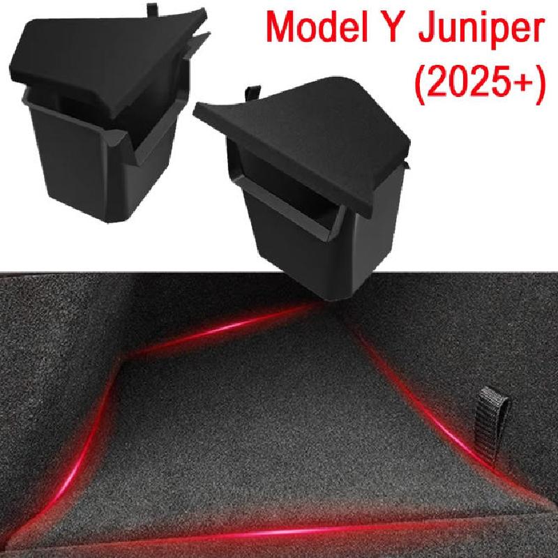 For Tesla Model Y Juniper 2025 Launch Refresh Rear Trunk Side Storage Box Cargo Organizer TPE Bin Flocking Mat Partition Board
