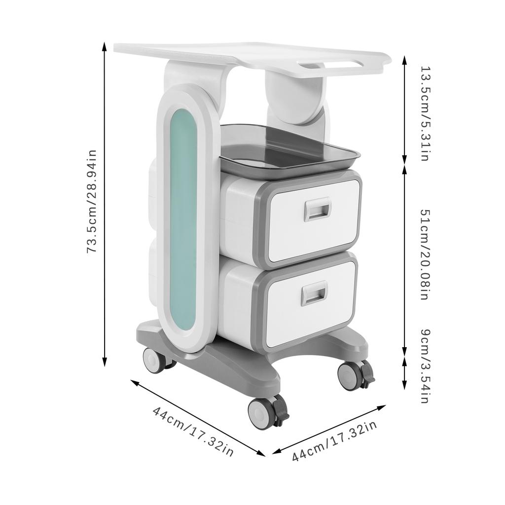 2-Drawer 2-Tray Rolling Salon Cart - Professional Medical Trolley for Dental Office, Spa, Lab & Cavitation Machine Storage