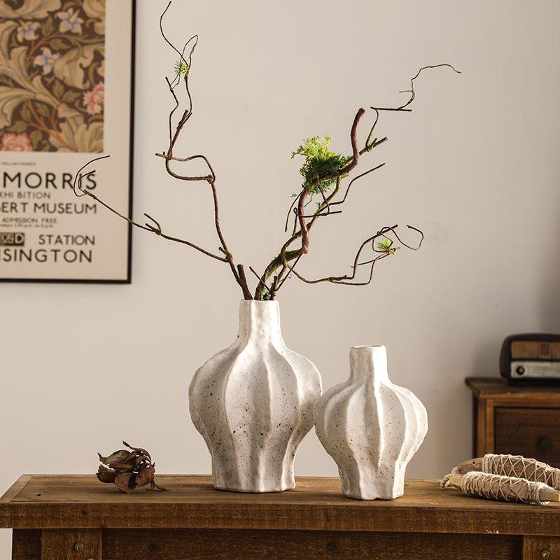 Zen Retro Handmade Rough Pottery Matte White Ceramic Vase Ornaments Home Study Accessories Tea Room Homestay Decoration Crafts