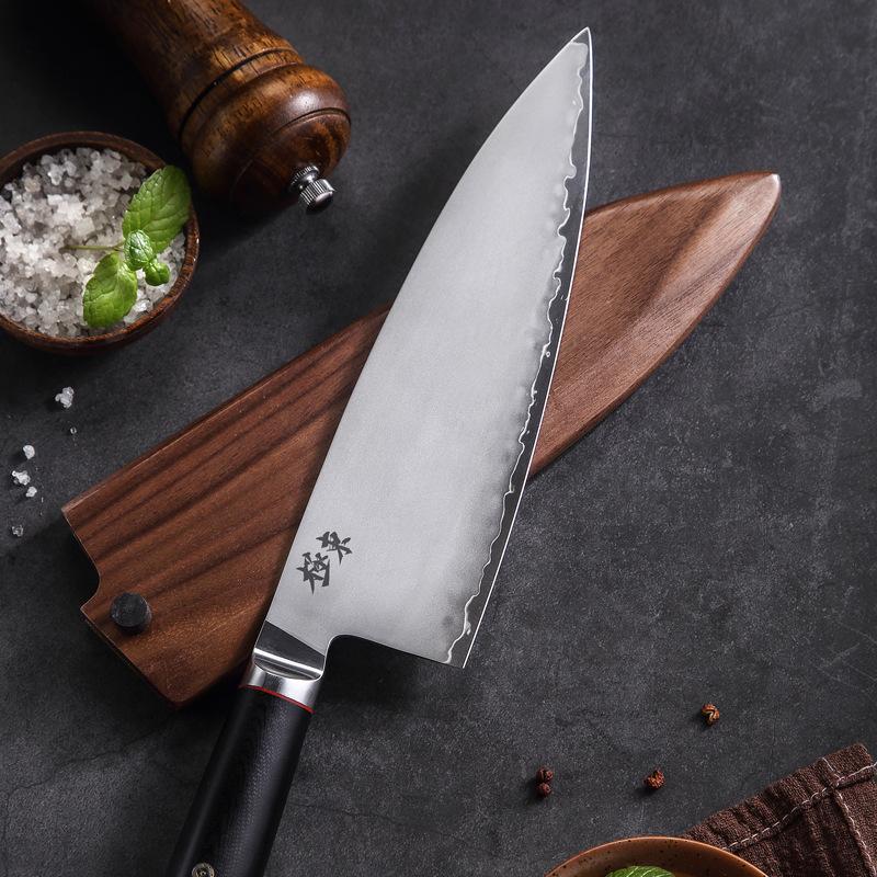 8 Inch Chef Knife With Wood Cover 3-Layers Clad Steel AUS10 Blade Sharp Cleaver Meat Sushi Slicing Vegetables Kitchen Knives