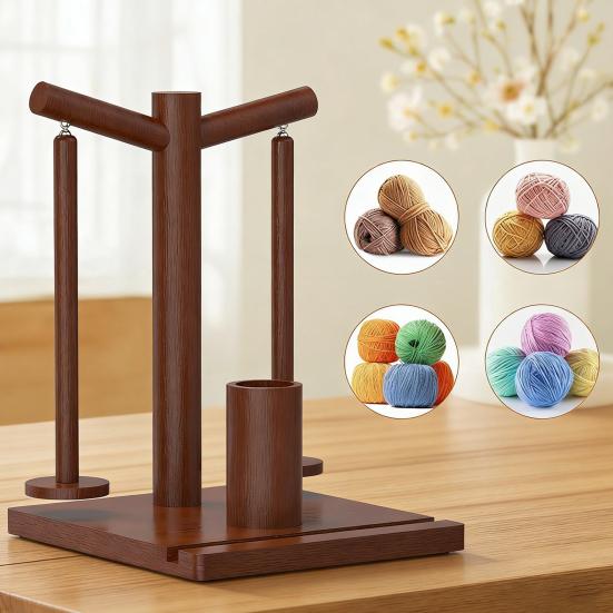 Premium Natural Wood Construction With Elegant Finish: Crafted from high-quality, eco-friendly wood, this yarn holder boasts durability and a refined aesthetic. The surface is meticulously sanded and coated to ensure smoothness without burrs or odors, combining functionality with artistic appeal that complements any crafting space beautifully.