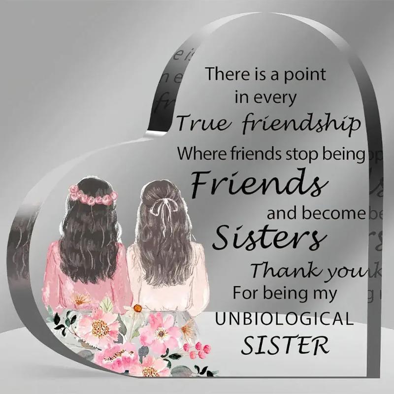 2D Flat Acrylic Heart Sister Gift Desktop Decoration Plaque, Home Decor Plaque Hanging Wall Art Decorative Garden Decoration for Room Door Signs Hangi