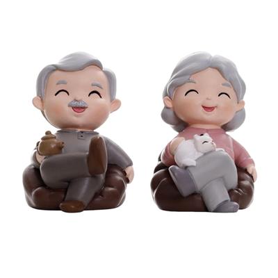 Cartoon Grandparent Statue Cute Longevity Cake Ornaments Old Couple Figurines Home