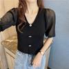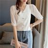 Fashion Knitted Tops Female Thin Summer Temperament Elegant Short-sleeved V-neck Chiffon Splicing Knit Shirt Casual Essential Slim Fit Pullovers Tees